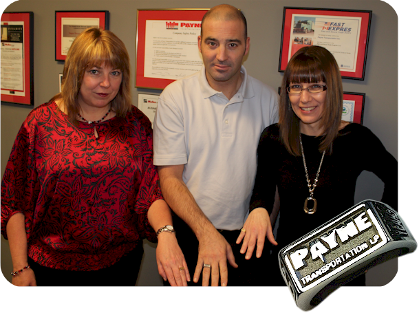 We would like to extend our congratulations to Janet Murray, Jason McNicholl & Susan Wiebe on their 10 Years of Service award. Tom Payne Jr. presented them with a beautiful 10 Karat Gold ring in recognition of their dedication and loyality to Payne Transportation.