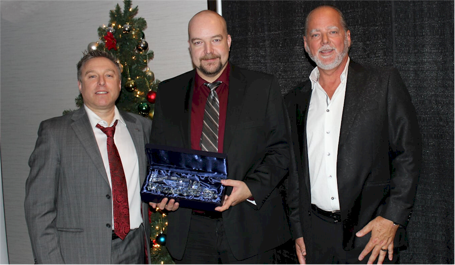 Payne celebrated its 2nd Annual Awards Gala and had over 200 attendees present at the Hilton Suites Winnipeg Airport, Daniel Pretali was awarded Driver of the Year for 2014. Daniel received a gorgeous crystal tractor/trailer personalized to him. Greg Ashcroft of Connexion Truck Centre surprised Daniel with a beautiful framed picture of his tractor (pictured above).