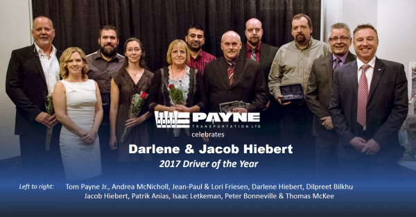 WINNIPEG, Man. – Payne Transportation held its annual awards gala Nov. 29, recognizing drivers who exemplify the best when it comes to safety, service, and community. Three drivers were honored with Driver of the Year awards in their respective categories.