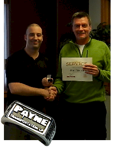 Grant came to Payne through the acquisition of Ger-Ed Transport in 2010. Pictured here with Jason McNicholl – VP of Operations, Grant was rewarded for his 10 years of loyality and service with a custom 10K white gold ring.
